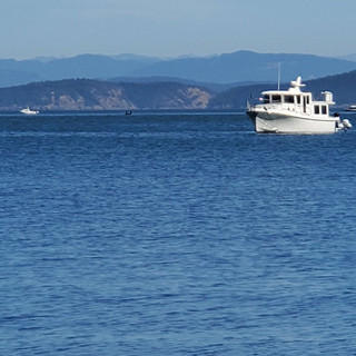 We were headed to Fisherman Bay on Lopez, and needed to watch the time regarding current and entrance into Cattle Pass, as well as tide level to enter the bay. As we were headed that direction, we decided to alter our course a bit and visit Watmough Bay. This favored spot (that we've visited many times by car or bike) has been on our itinerary a couple of times in the past but we didn’t make it due to wind/weather and route. This time, everything lined up, so why not?